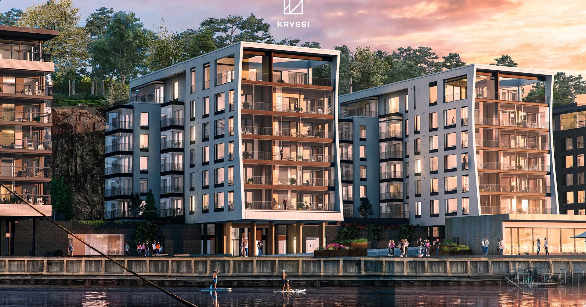 Kryssiä inspiroi vastarannalla sijaitseva Suomen Joutsen ja rakennuksen kaunis purjemainen muoto antaa häivähdyksen Suomen Joutsenen kunnian päivistä.
